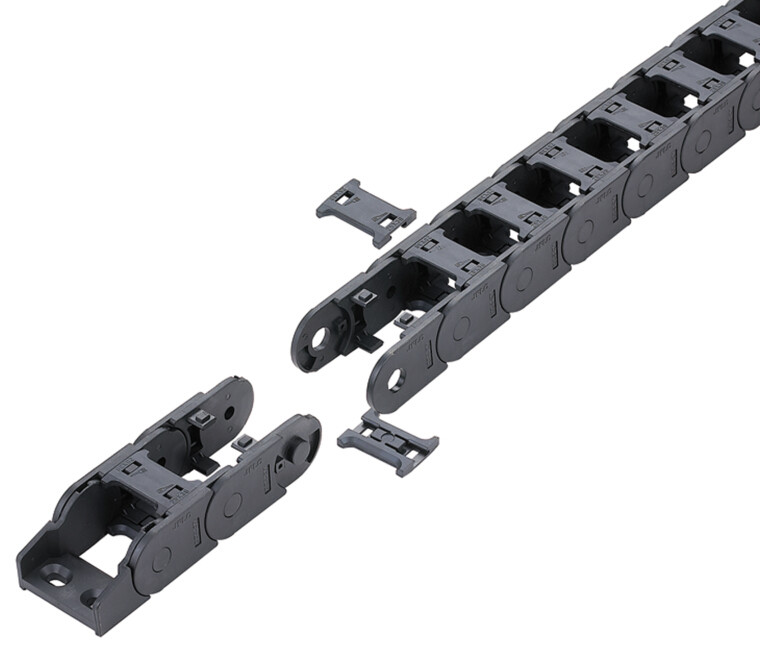 尼龍拖鏈已被廣泛應用于數控機床、電子設備、石材機械、玻璃機械、門窗機械、注塑機、機械手、起重運輸設備、自動化倉庫等。